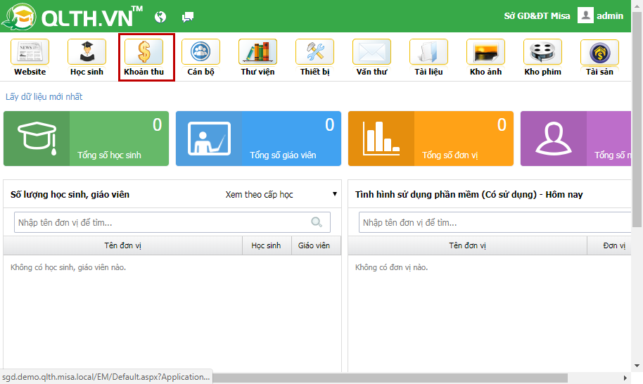1. Đăng nhập vào đường dẫn của Sở giáo dục, chọn phân hệ Khoản thu.