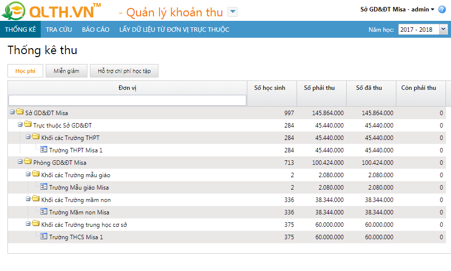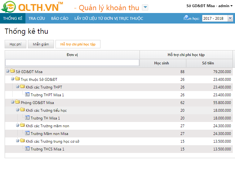 Giúp kế toán Sở giáo dục có thể xem được thống kê tình hình thu học phí, miễn giảm học phí hay hỗ trợ chi phí học tập của các trường mình quản lý.