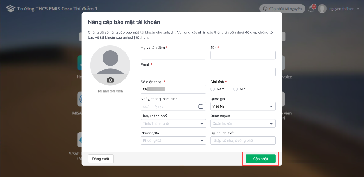 - Nhấn Cập nhật