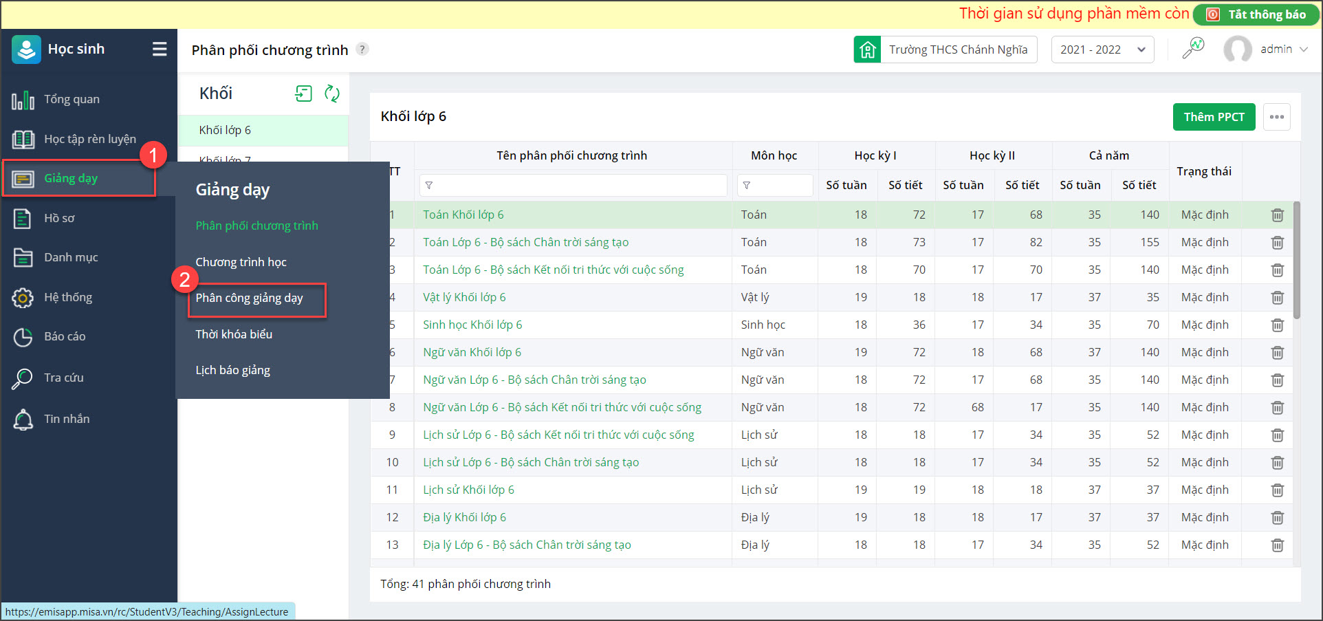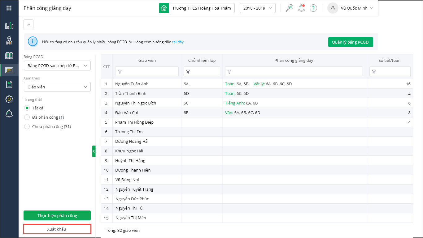1. Thực hiện phân công giảng dạy cho từng giáo viên