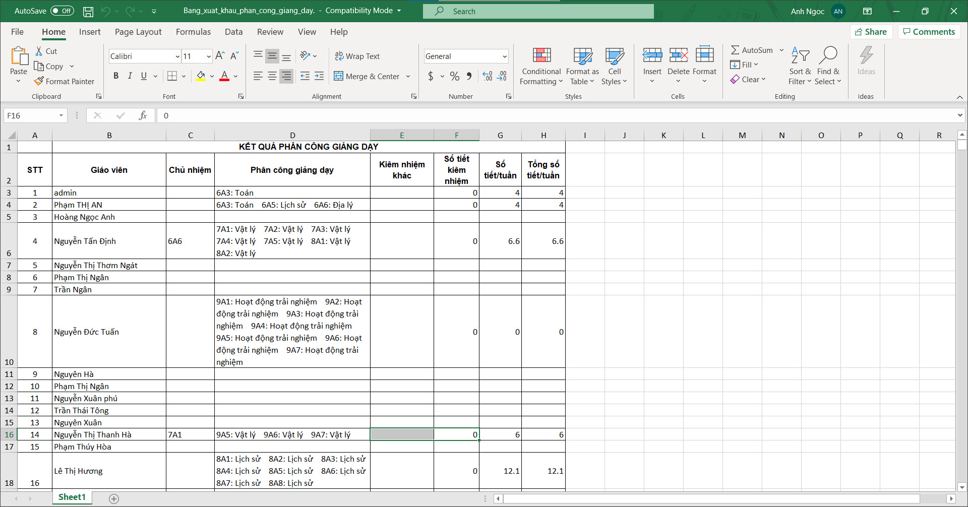 Bước 2: Sau khi tải xuống, anh/ chị mở file để xem lại danh sách phân công giảng dạy.