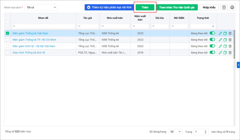 - Nhấn Thêm để thêm mới biên mục sách.