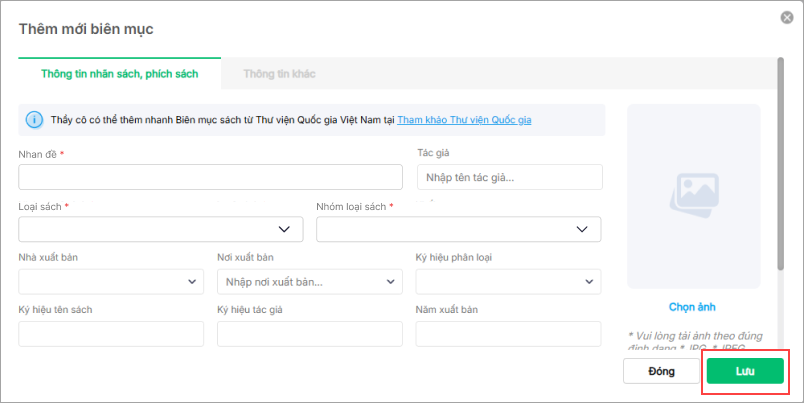 - Nhấn Lưu để thêm mới biên mục sách trên phần mềm.