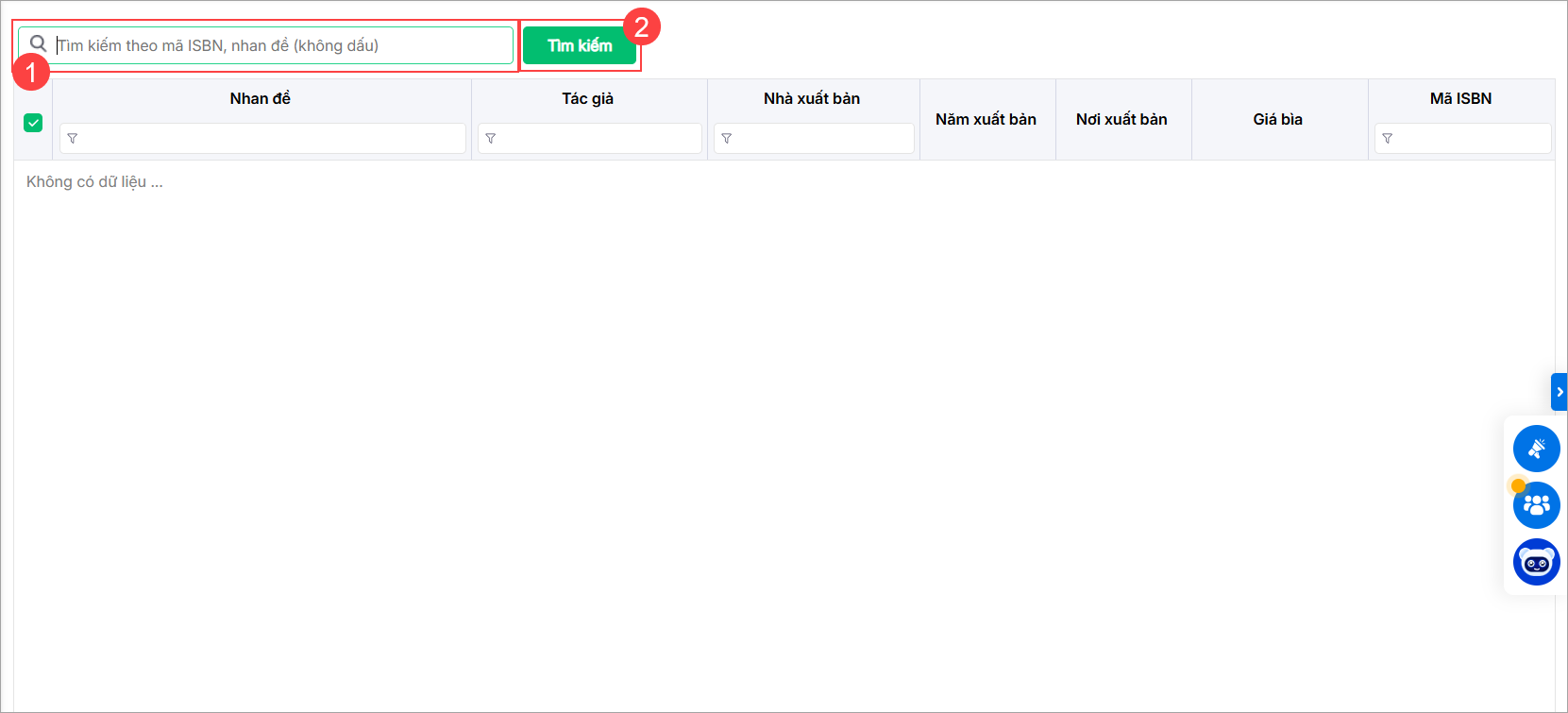 - Tìm kiếm biên mục bằng cách nhập thông tin: mã ISBN hoặc nhan đề sách (lưu ý nhập không dấu) trên thanh tìm kiếm.