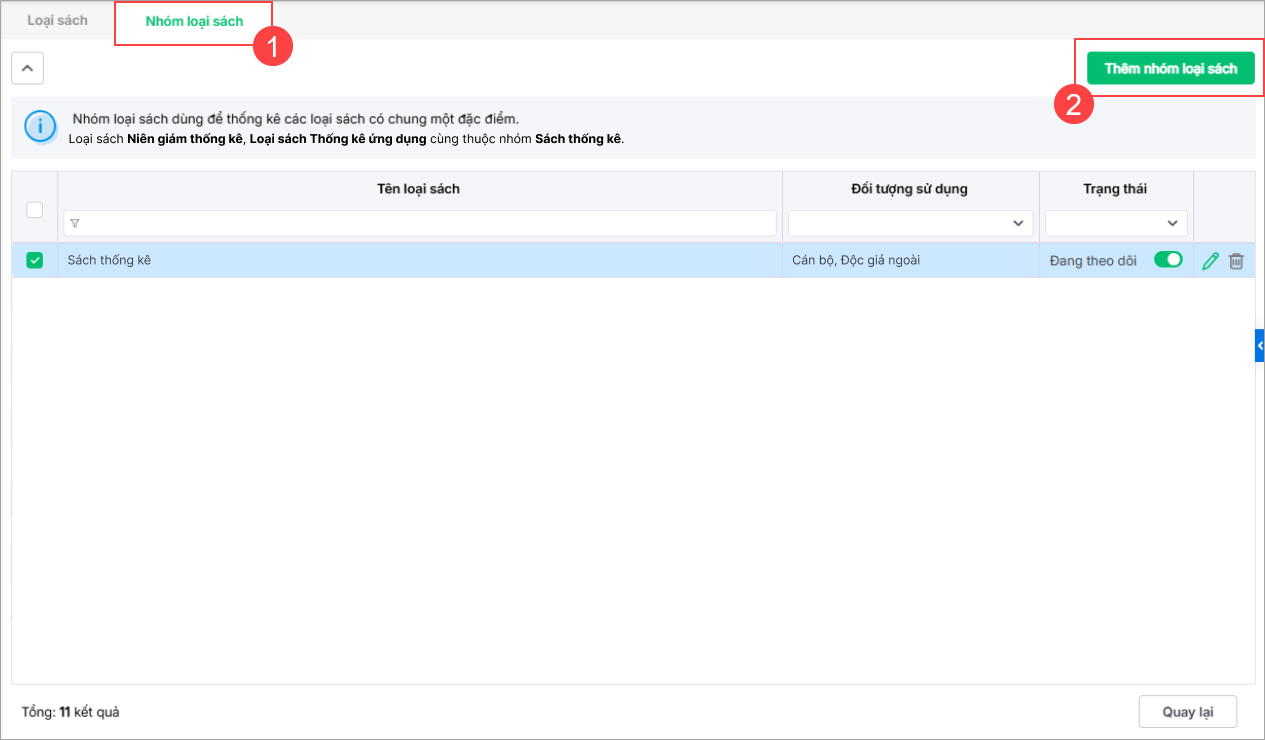 - Nhấn Nhóm loại sách/Thêm