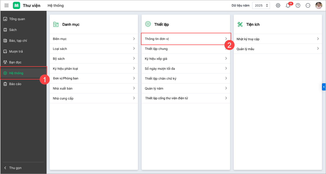 Anh/chị vào phân hệ Thư viện,