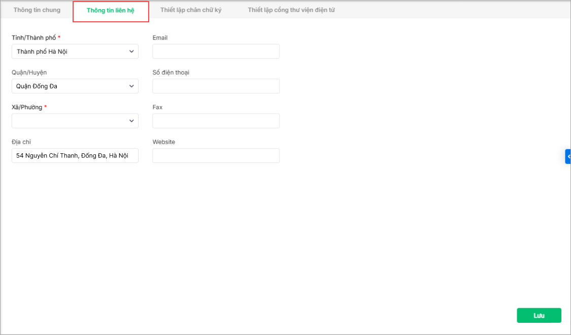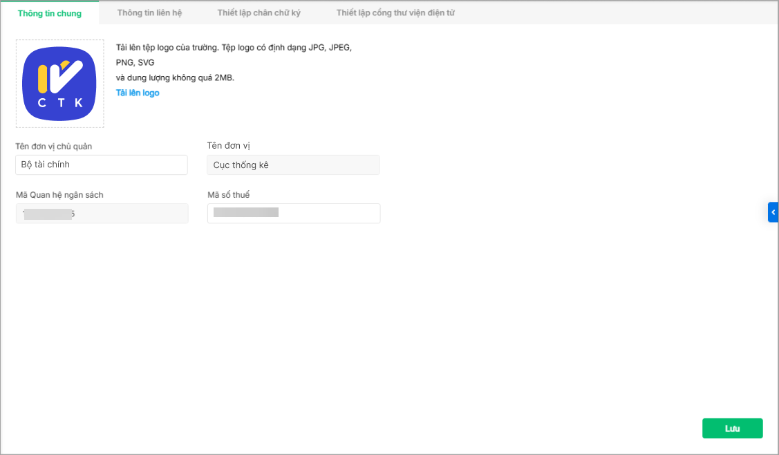 6. Sau khi thiết lập xong thông tin đơn vị, anh/chị chọn Lưu