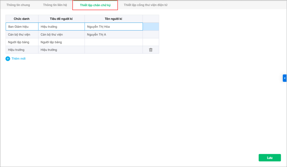 1. Nhấn Thêm để thêm thông tin phân loại sách.