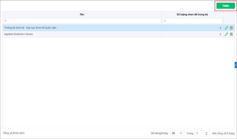 2. Chọn Thêm, khai báo thông tin bộ sách, nhấn Lưu