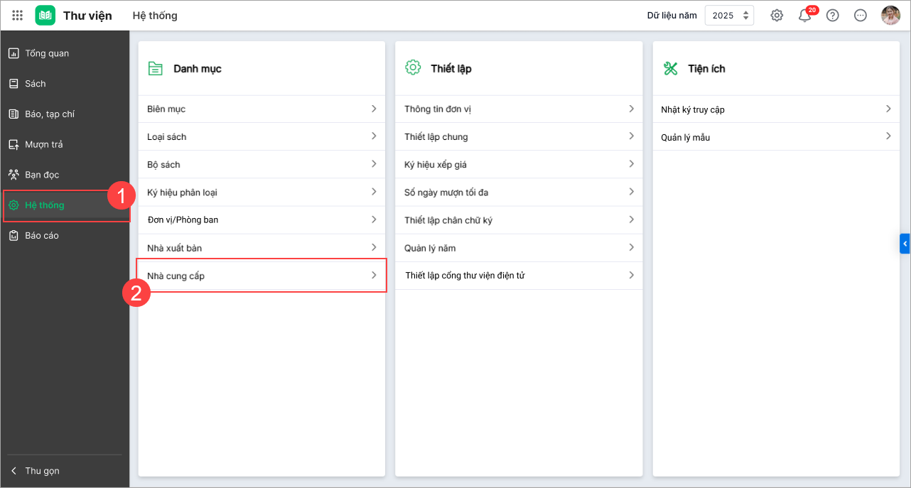 1. Chọn menu Hệ thống\Nhà cung cấp