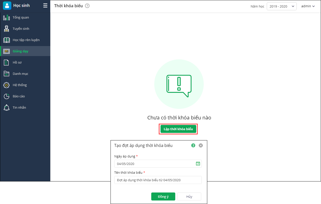 2. Khai báo thông tin Tạo đợt áp dụng thời khóa biểu, nhấn Đồng ý