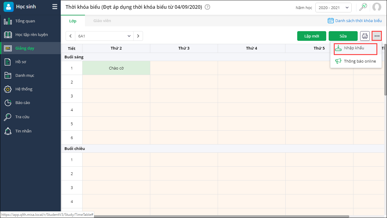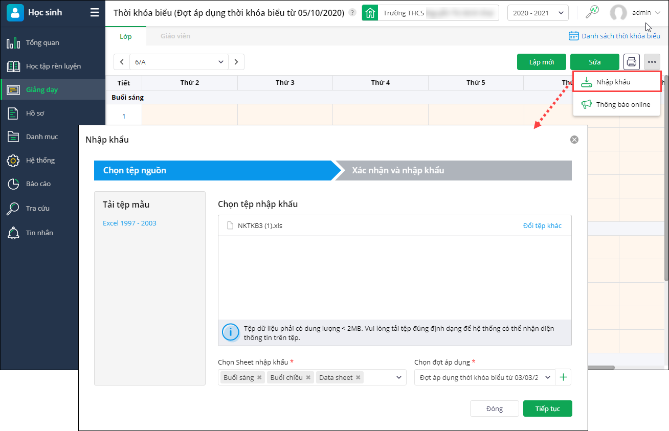 Nhập khẩu thời khóa biểu có sẵn vào phần mềm
