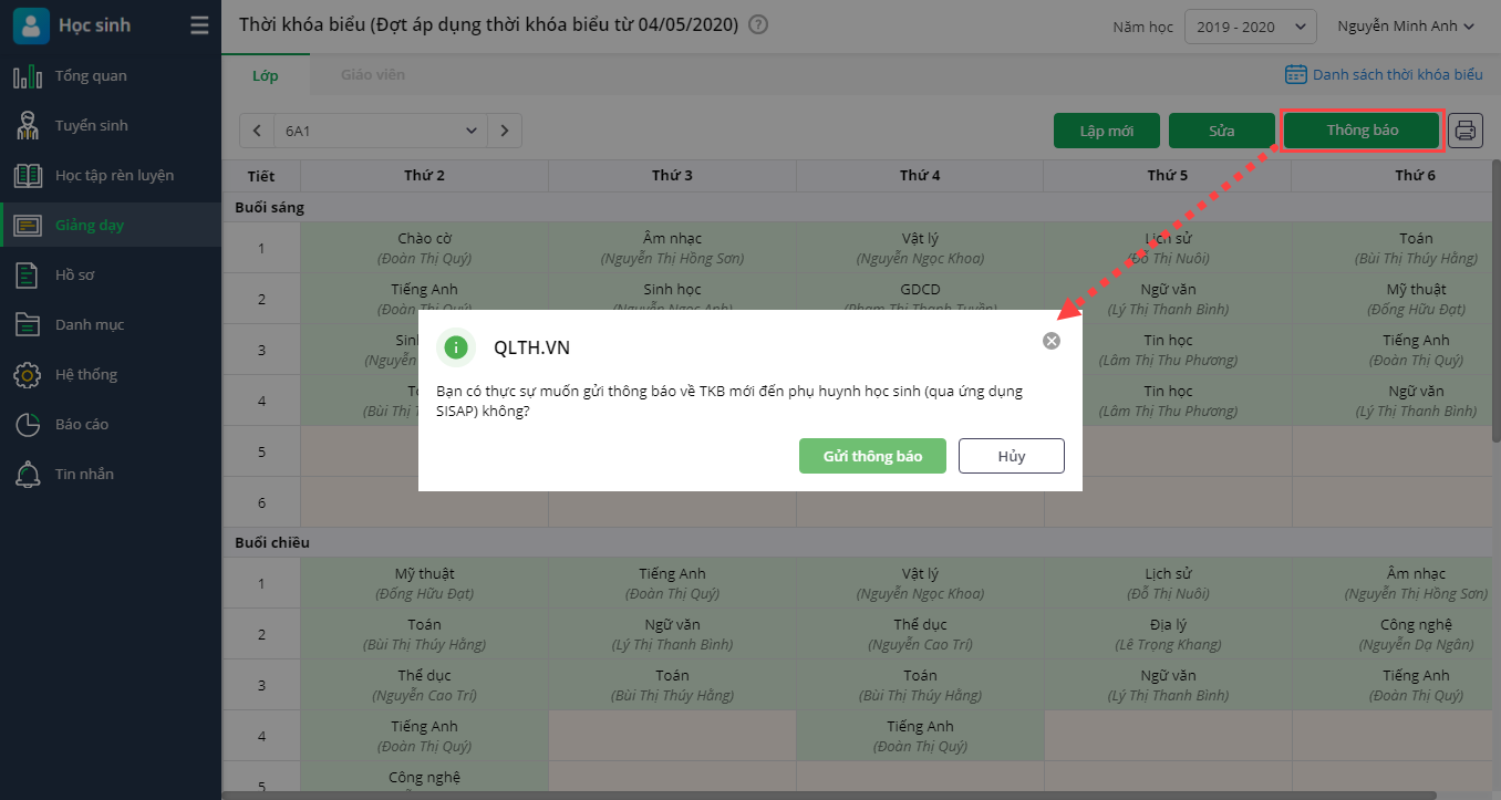 Trường hợp trường có sử dụng ứng dụng SISAP – Dịch vụ chia sẻ thông tin nhà trường, phụ huynh thì có thể gửi thông báo về thời khóa biểu cho phụ huynh bằng cách