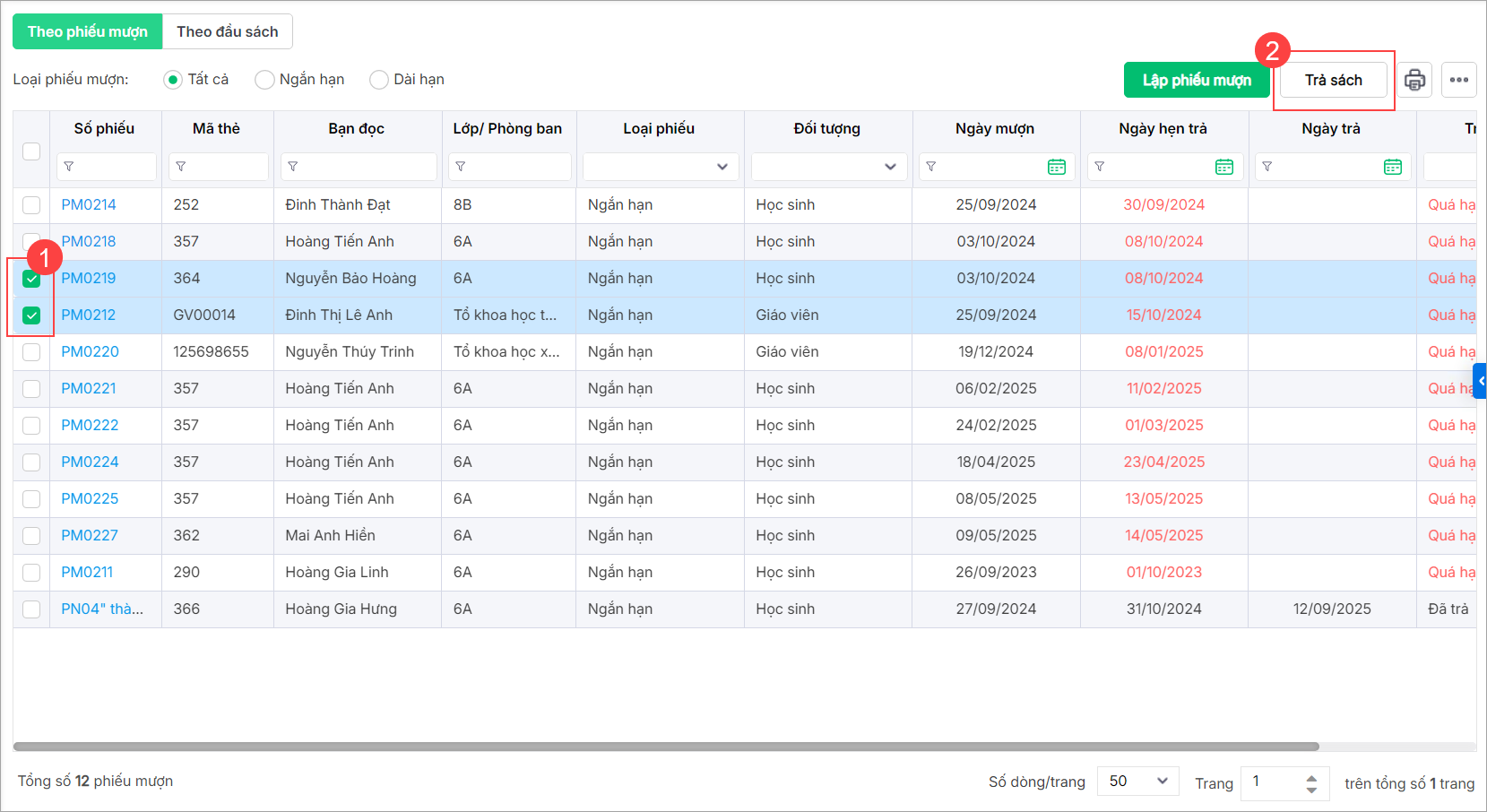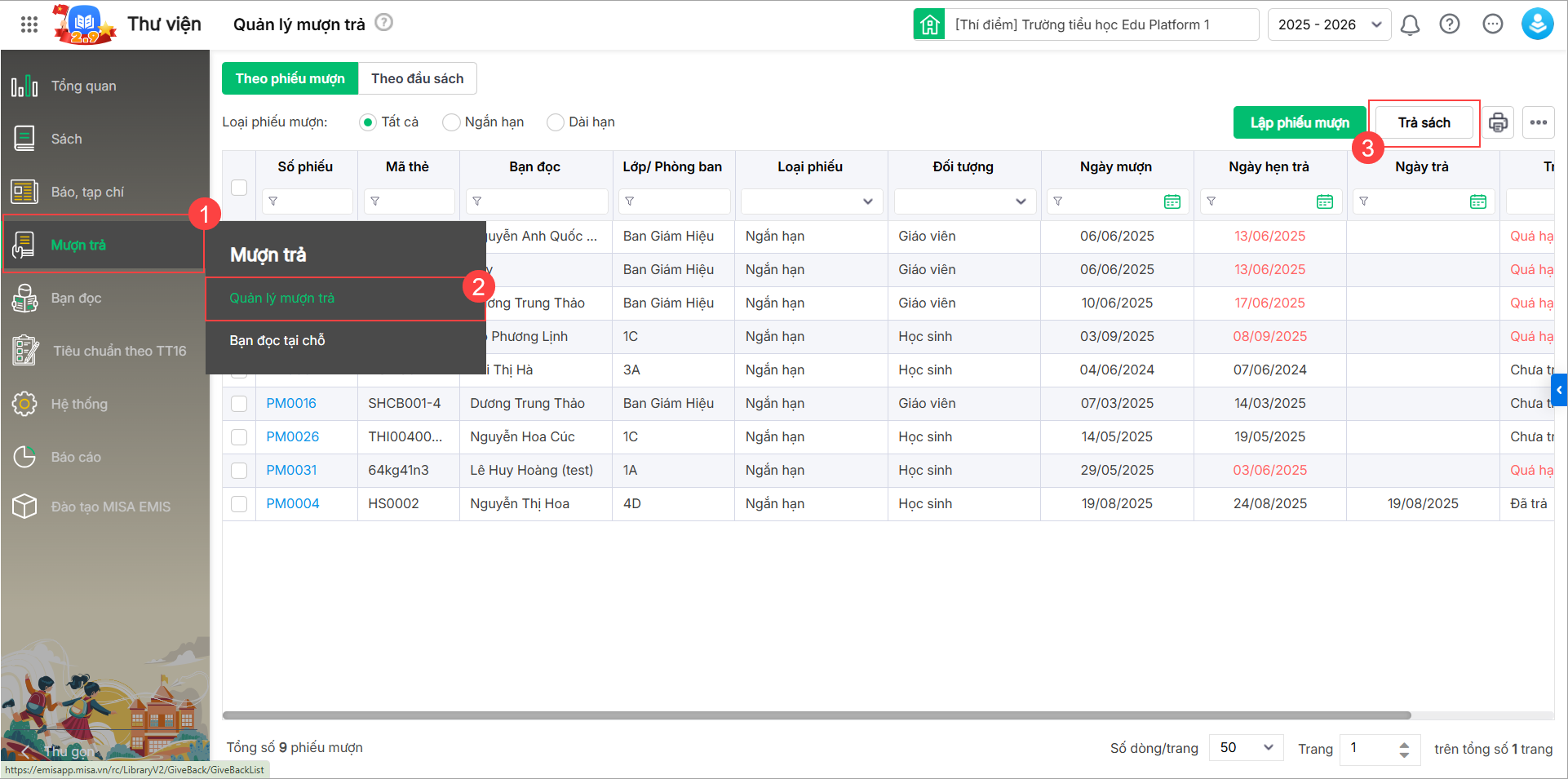 - Cán bộ thư viện quản lý phiếu mượn trả sách của bạn đọc.