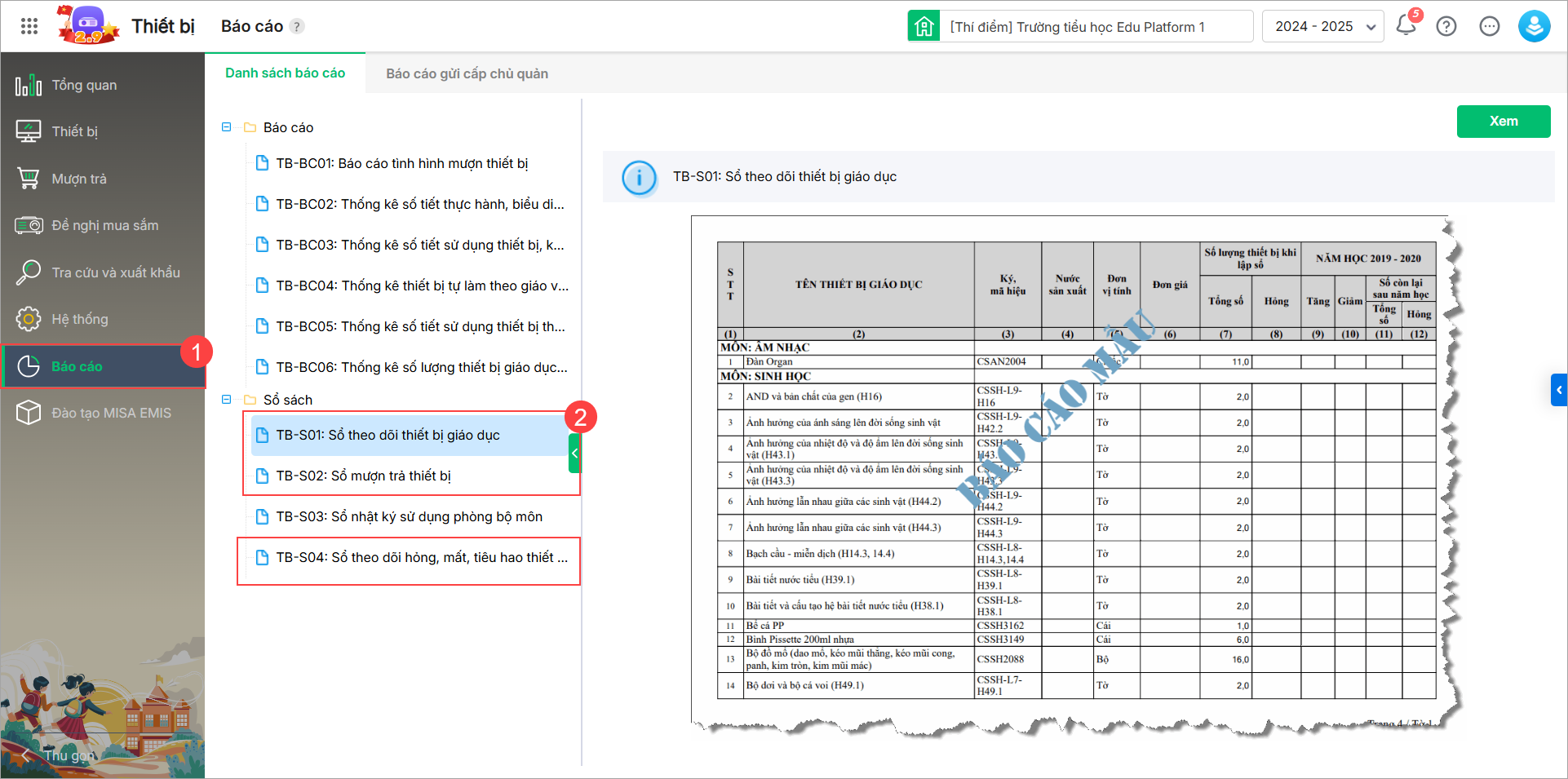 [EMIS Thiết bị] Cán bộ thiết bị mong muốn tùy chỉnh thông tin địa chỉ hành chính trong các báo cáo để đảm bảo chính xác thông tin khi gửi cho cấp trên