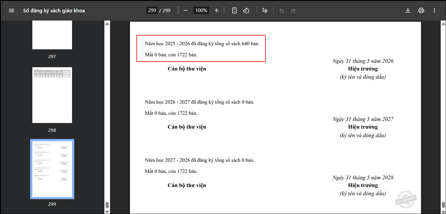 - Do đó, số biên mục sách giáo khoa trên báo cáo trên Sổ đăng ký tổng quát không khớp với Sổ đăng ký sách giáo khoa.