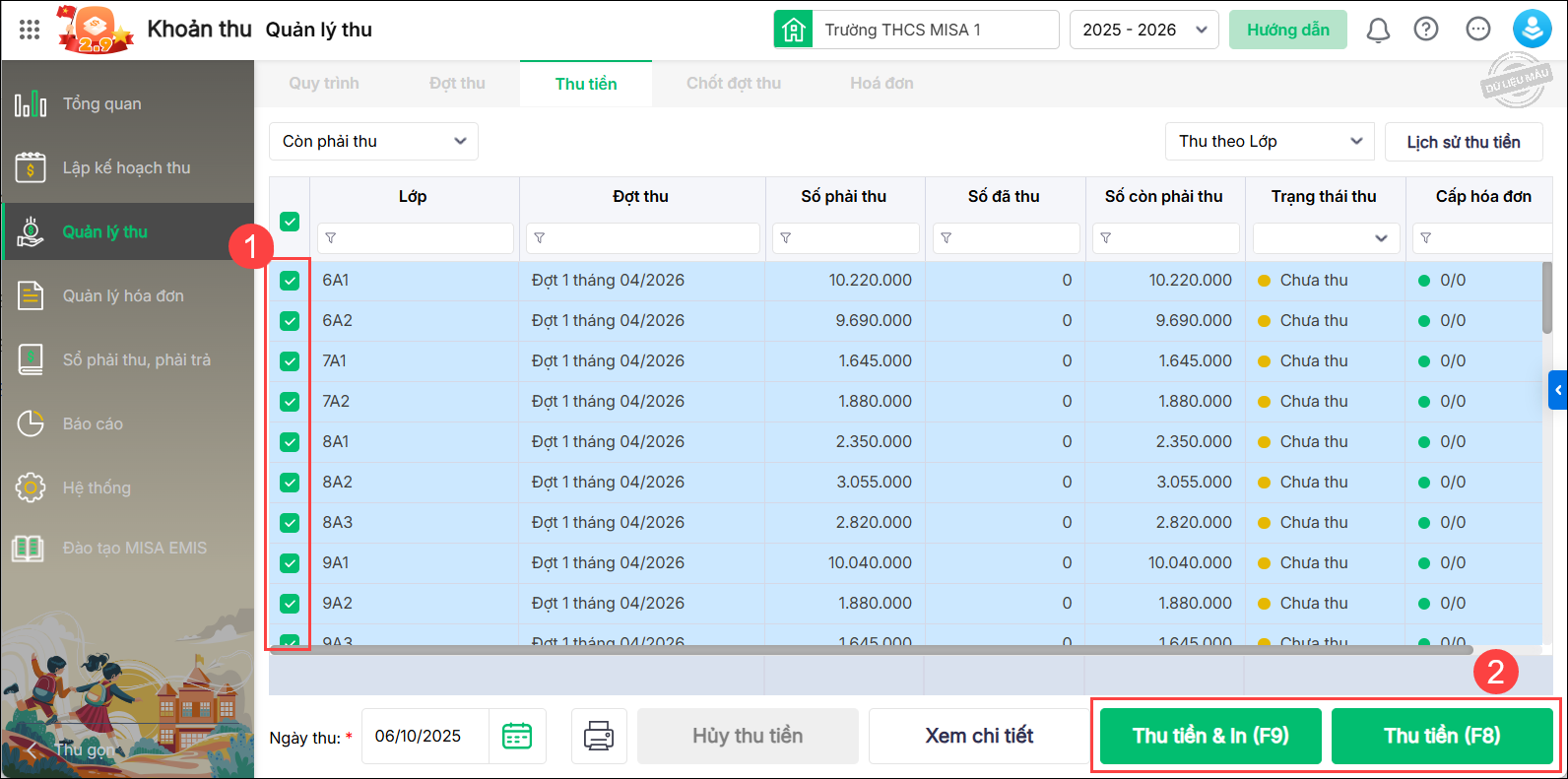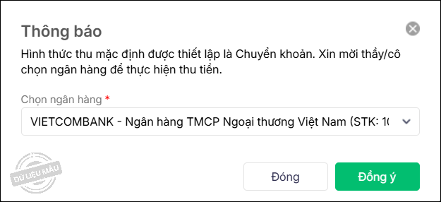 Hàng tháng, sau khi đơn vị thực hiện thu tiền học sinh và gạch nợ đầy đủ, kế toán sẽ xuất hóa đơn cho toàn trường, trong đó có thông tin hình thức thu