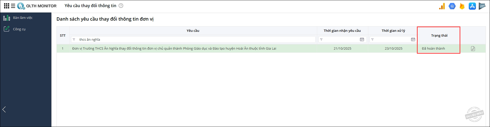 - Sau khi chuyển đổi dữ liệu thành công, hệ thống hiển thị thông báo và chuyển Trạng thái sang Đã hoàn thành.