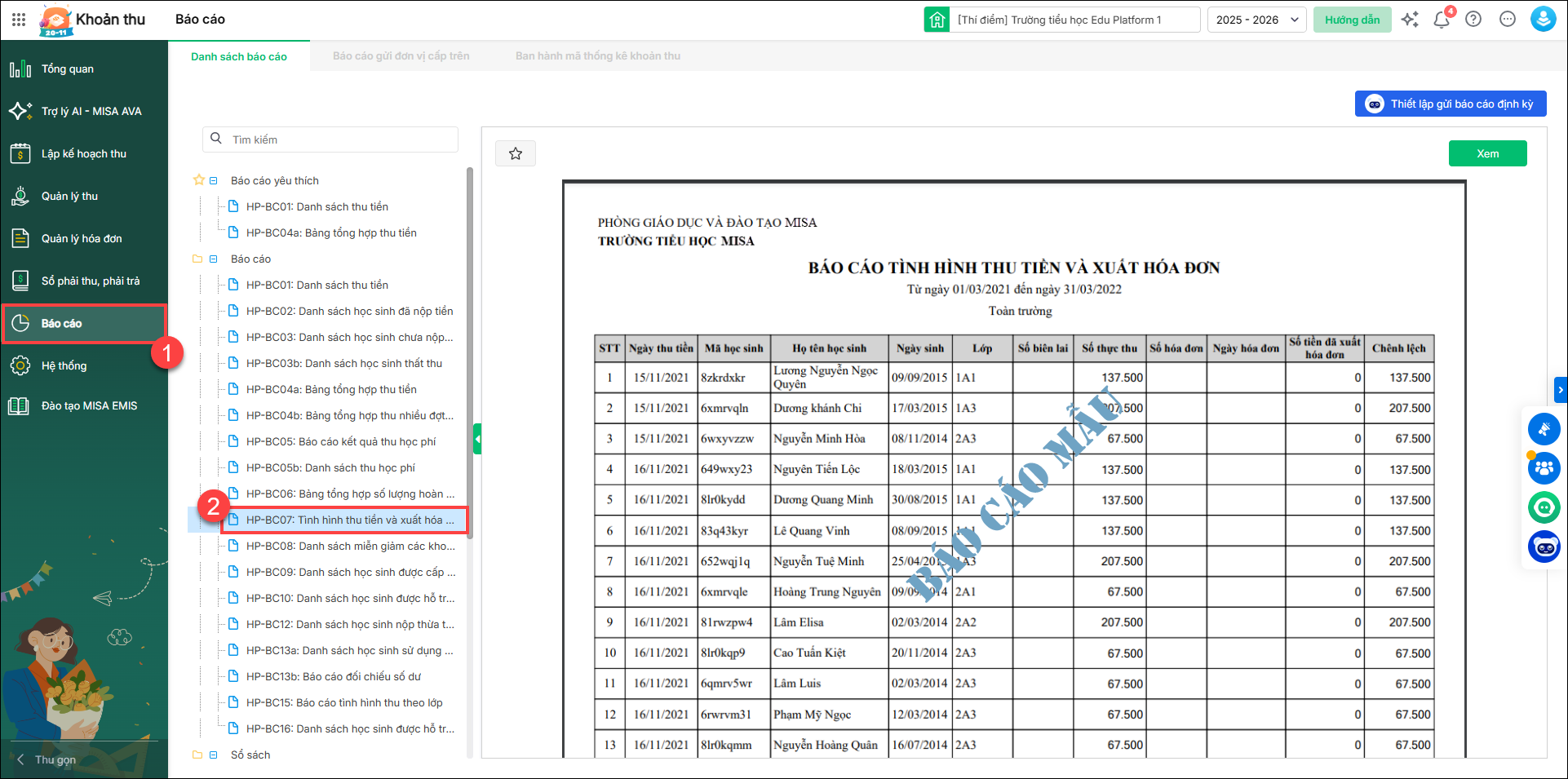 Bài viết hướng dẫn kế toán xuất hóa đơn theo số ăn thực tế, báo cáo tình hình thu tiền và xuất hóa đơn sẽ lấy lên số tiền thu tiền của học sinh sau khi hoàn trả để khớp với giá trị hóa đơn gửi cho cơ quan thuế