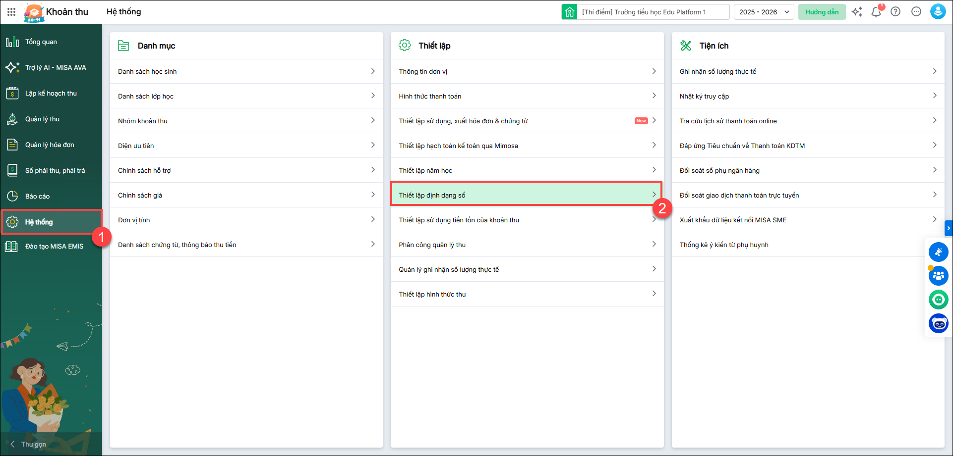 - Vào Hệ thống/Thiết lập định dạng số