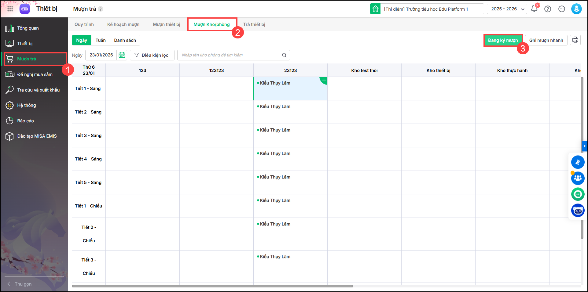 2. [EMIS Thiết bị] Hướng dẫn giáo viên tìm nhanh thiết bị thuộc môn học khi đăng ký mượn kèm thiết bị với kho phòng