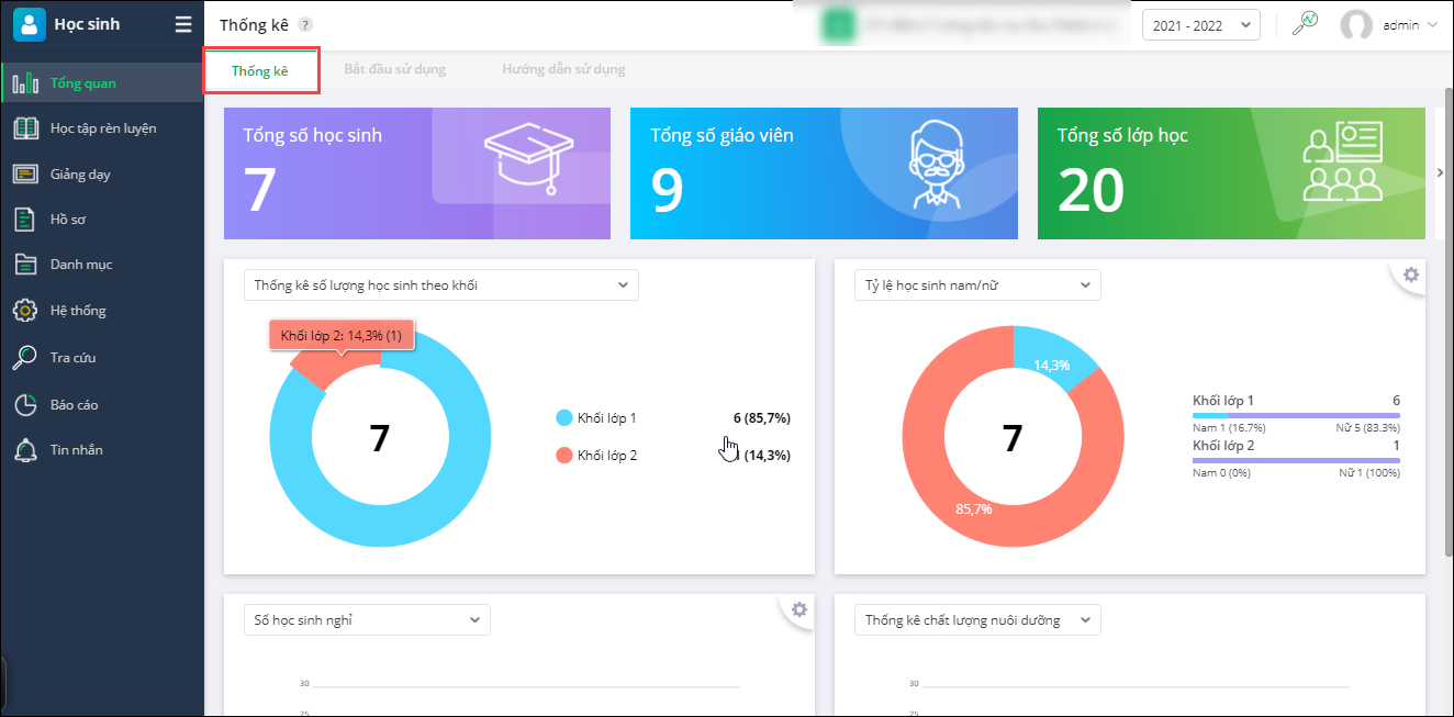 - Tại phân hệ Học sinh\Tổng quan\Thống kê