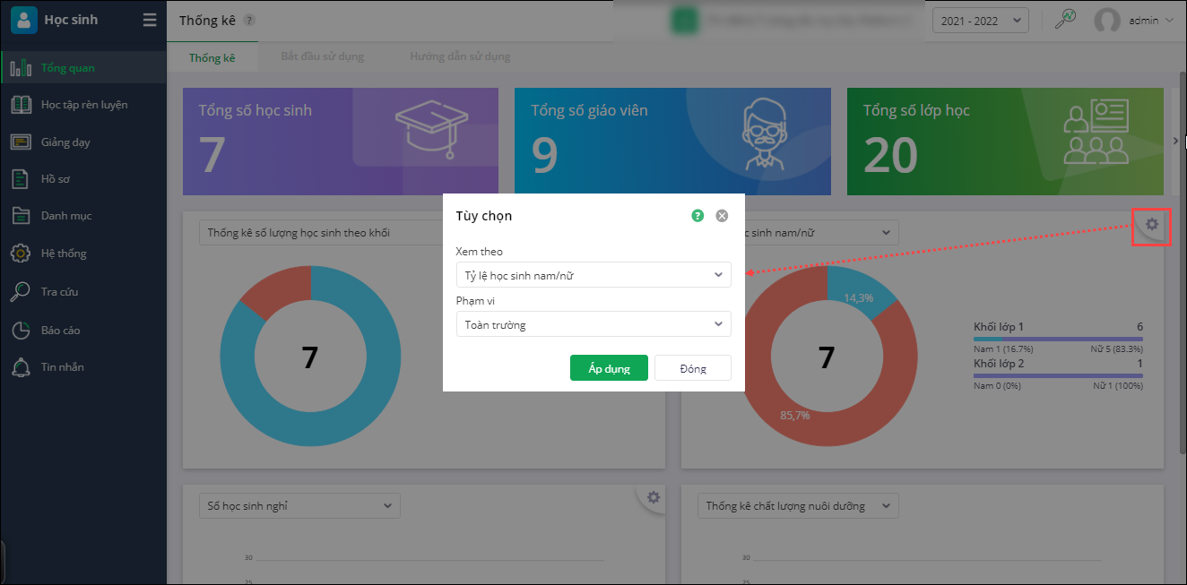 - Tại phân hệ Học sinh\Tổng quan\Thống kê