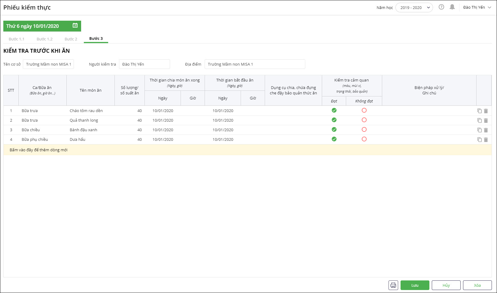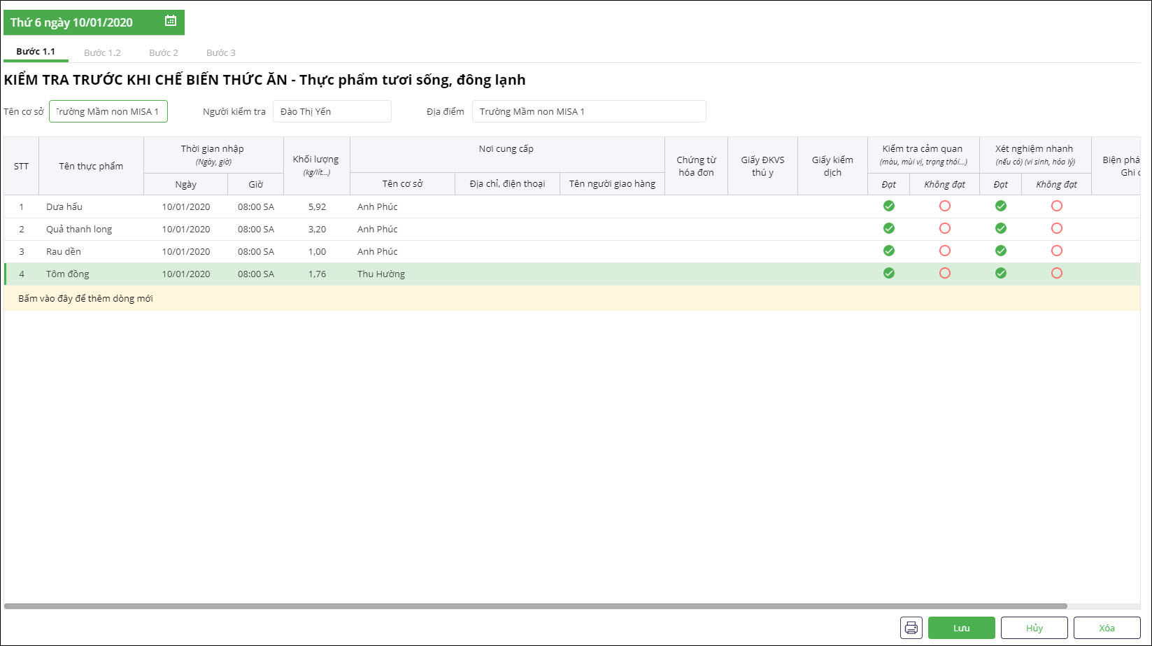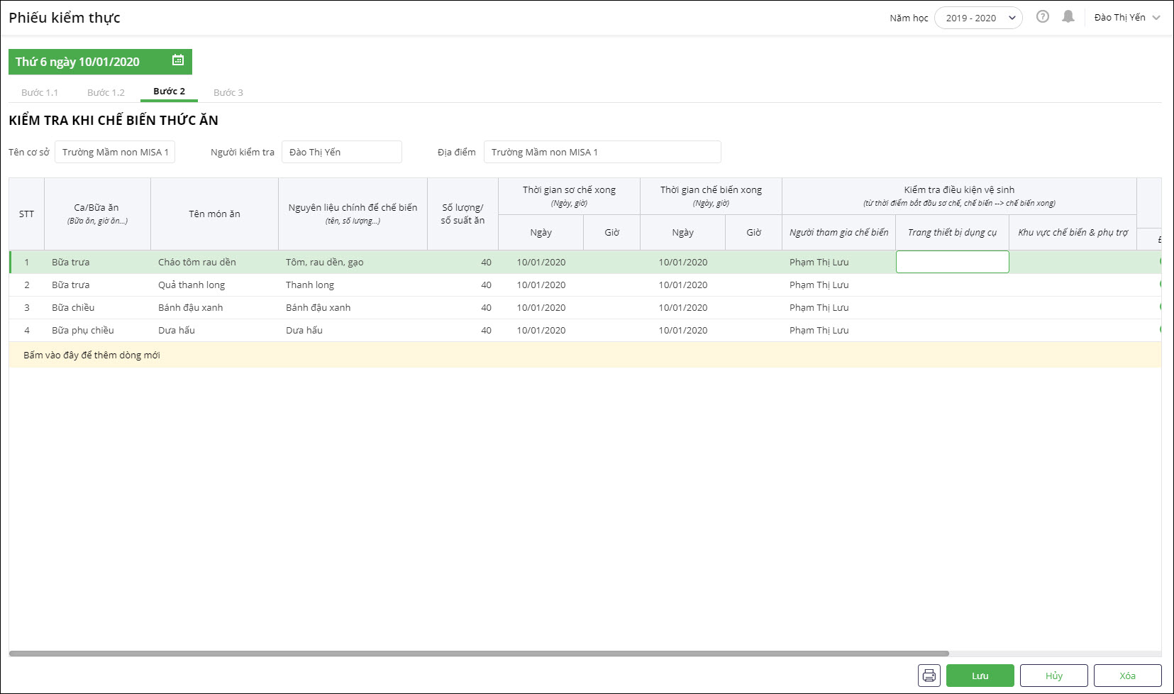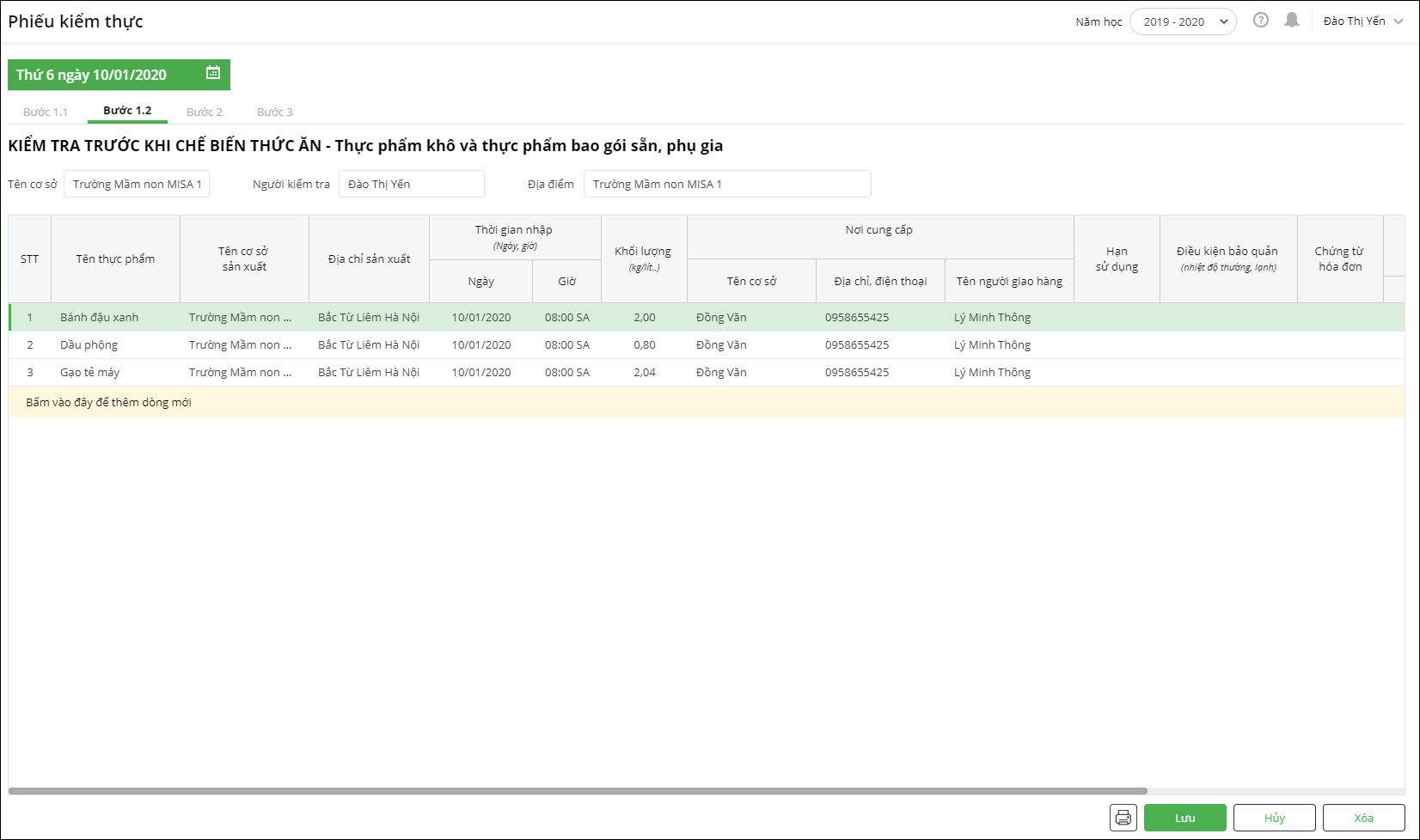 - Trường hợp này cán bộ dinh dưỡng tự khai báo các thông tin trong phiếu kiểm thực