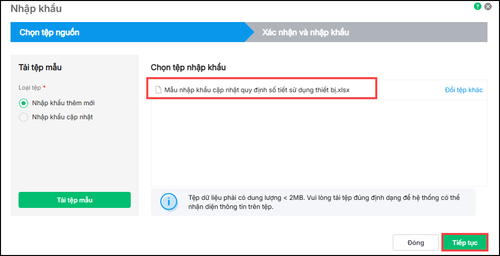 Nhấn Tải tệp mẫu để tải về tệp dữ liệu mẫu