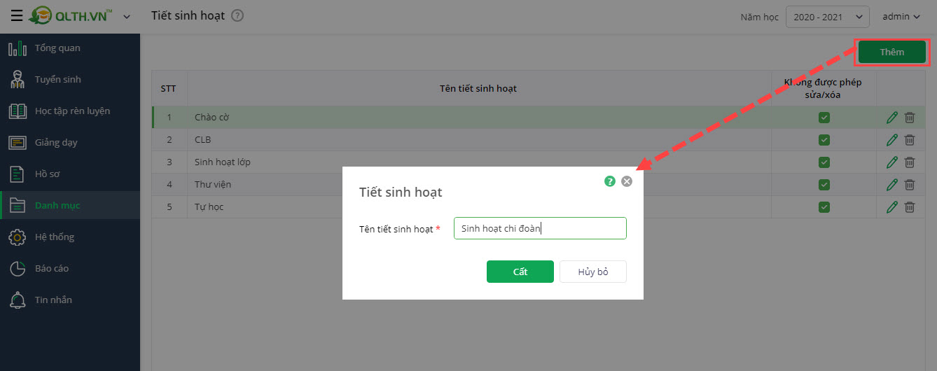 2. Nhấn Thêm và thực hiện khai báo Tên tiết sinh hoạt.