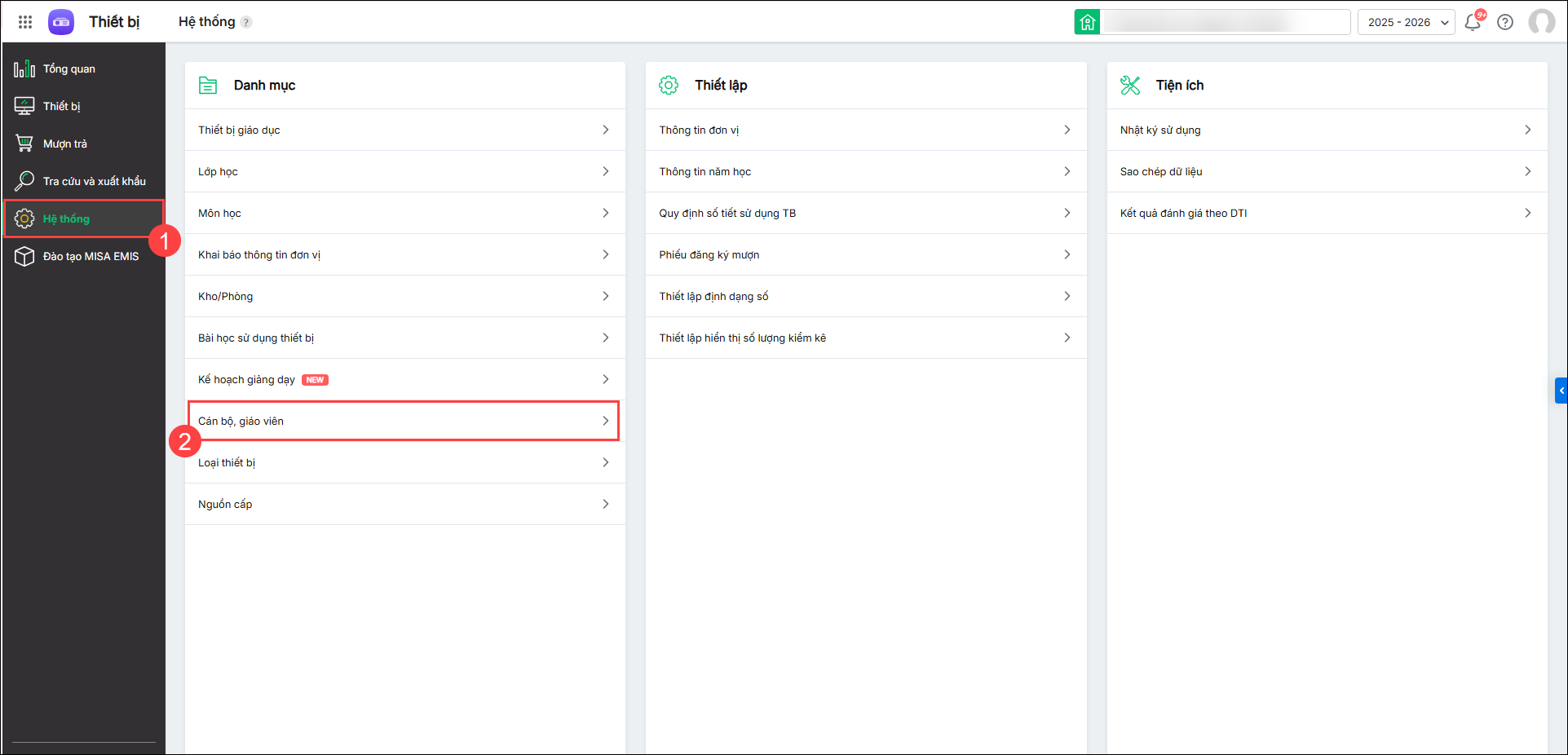 1. Vào Hệ thống/Cán bộ giáo viên