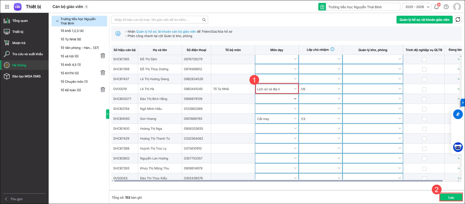 [EMIS Thiết bị] Hướng dẫn giáo viên thiết lập thông tin môn học đang phụ trách