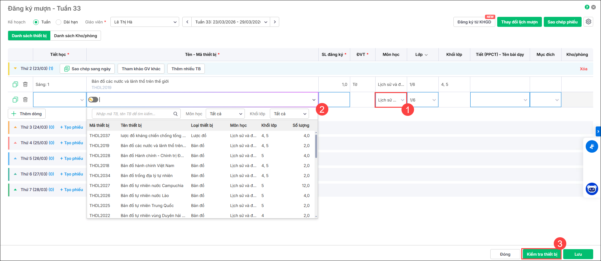 Bài viết hướng dẫn giáo viên bộ môn thiết lập thông tin môn học đang phụ trách để tìm nhanh các thiết bị, bài học trên phiếu đăng ký mượn.