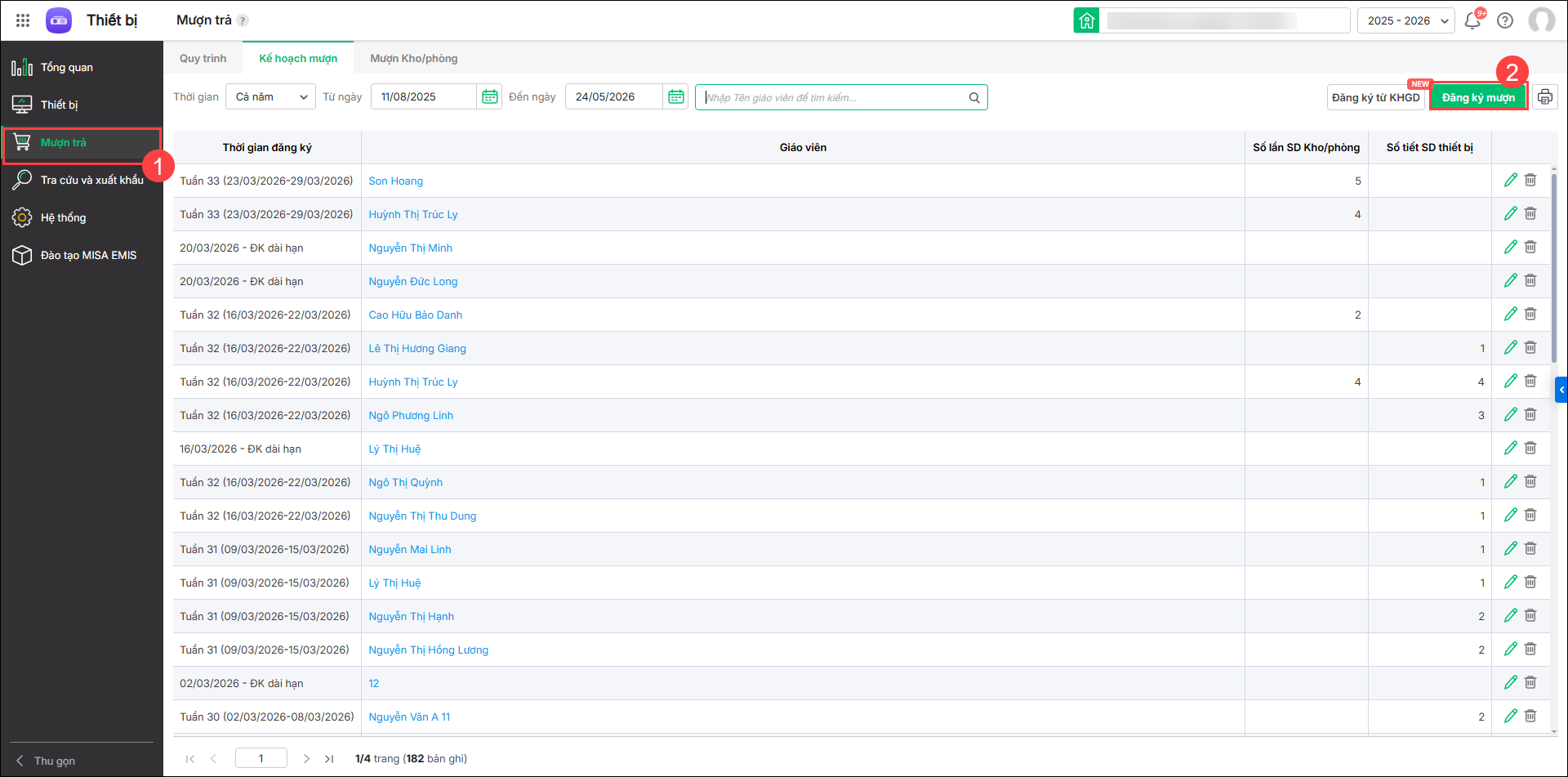 3. Vào Mượn trả/Đăng ký mượn