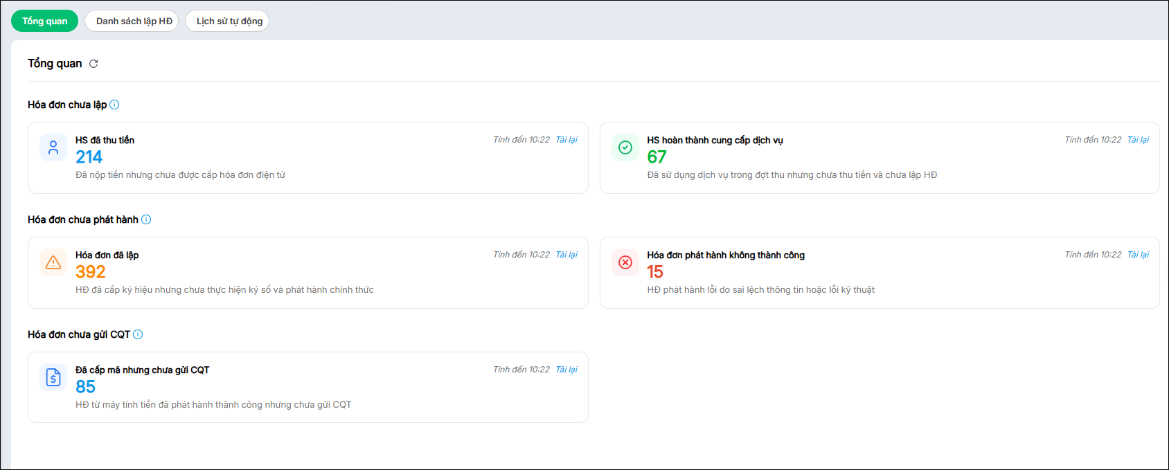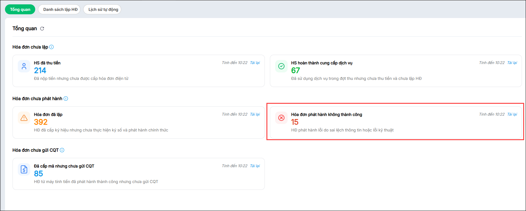 • Hóa đơn phát hành không thành công:  Chương trình thống kê số lượng HĐ phát hành lỗi do sai lệch thông tin hoặc lỗi kỹ thuật.