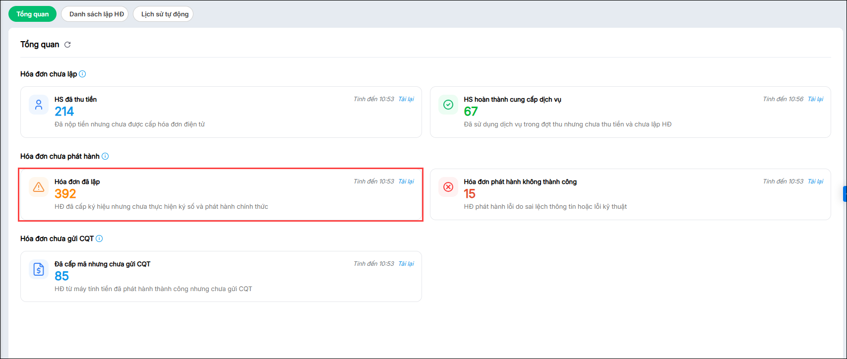 • Hóa đơn chưa lập: Các trường hợp hóa đơn đủ điều kiện nhưng chưa khởi tạo hóa đơn