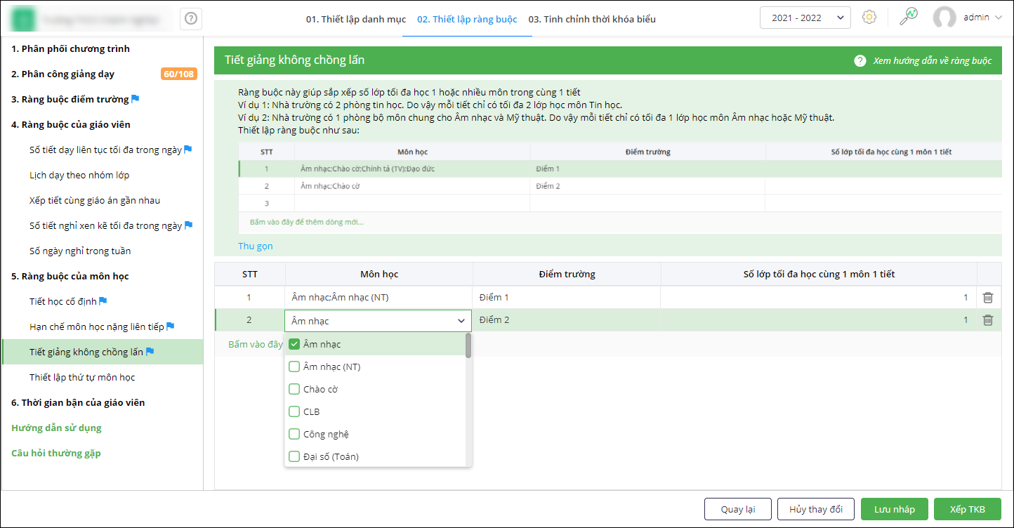 Ràng buộc này giúp sắp xếp số lớp tối đa học 1 hoặc nhiều môn trong cùng 1 tiết
