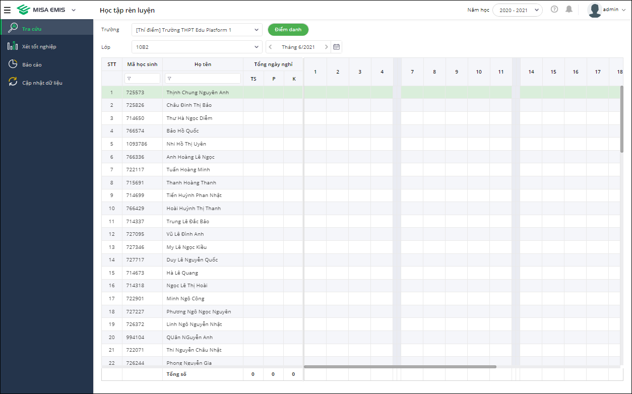 Cán bộ, Chuyên viên Phòng Giáo dục có thể tra cứu được thông tin Điểm danh của các trường trực thuộc trên phần mềm QLTH.VN để phục vụ việc thanh tra, kiểm tra mà không cần xuống tận trường.
