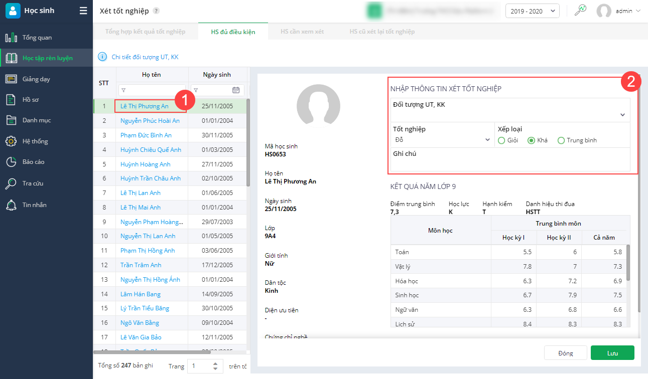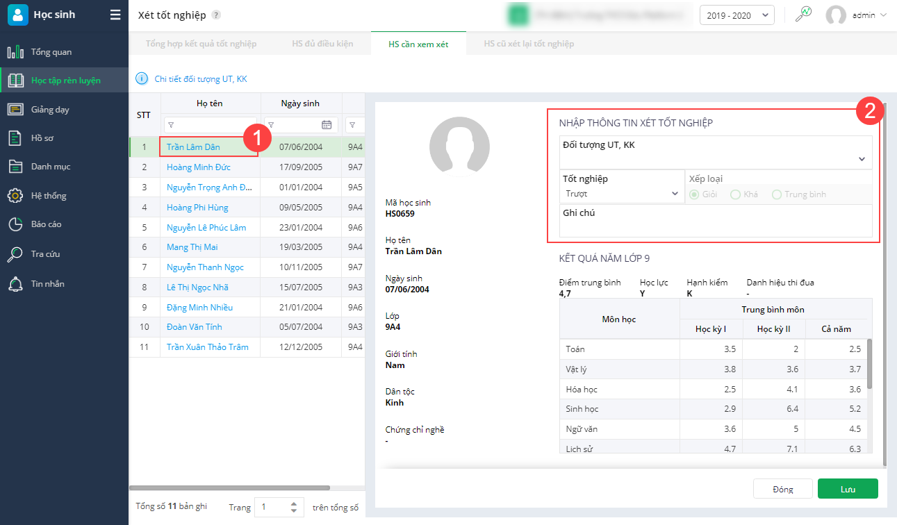 - Tích chọn các học sinh cần xét tốt nghiệp, nhấn Lưu.