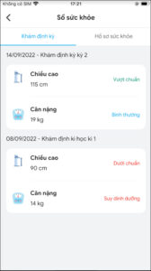 - Tại đây, Phụ huynh có thể theo dõi thông tin số đo chiều cao, cân nặng của trẻ tại trường.