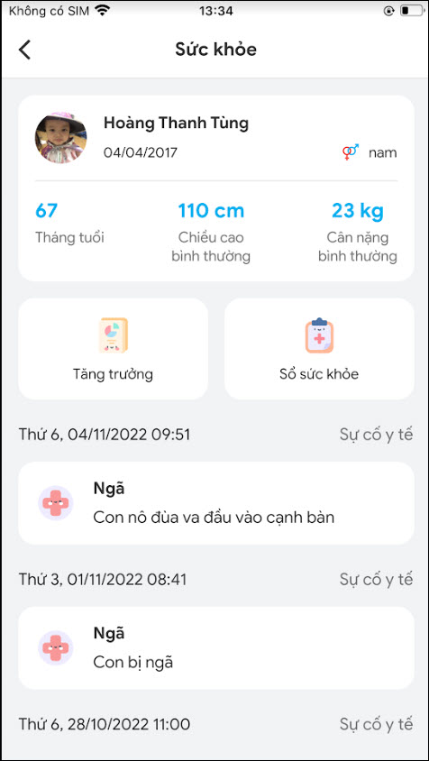 - Tại Thông tin con, vào Sức khỏe.
