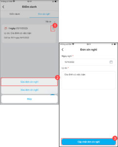 - Nếu muốn thay đổi thông tin đơn, chọn Sửa đơn xin nghỉ. Chỉnh sửa thông tin và chọn Cập nhật đơn xin nghỉ.
