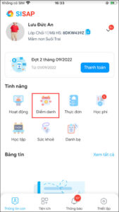 Vào Thông tin con, chọn Điểm danh.