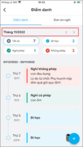 - Ứng dụng thống kê chi tiết đến từng số buổi Đi học; Nghỉ phép và Nghỉ không phép.