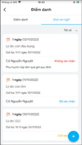 - Đã xác nhận: Giáo viên đã phê duyệt đơn, con được tính là nghỉ học có phép.