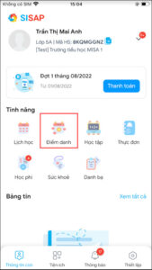 - Tại mục Điểm danh, anh/chị có thể theo dõi tình hình điểm danh của con trong tháng.