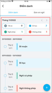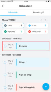 - Ứng dụng thống kê chi tiết đến từng số buổi Đi học; Nghỉ phép và Nghỉ không phép.