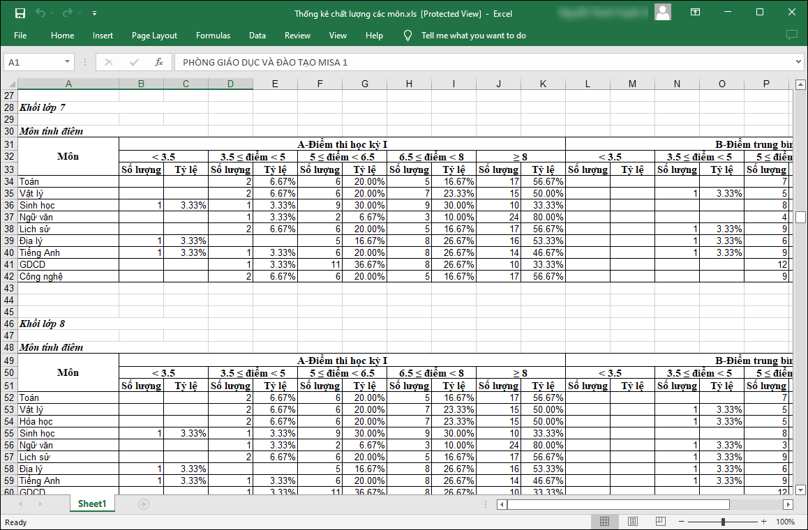 - Chọn Năm học; Học kỳ; Khối lớp cần thống kê.
