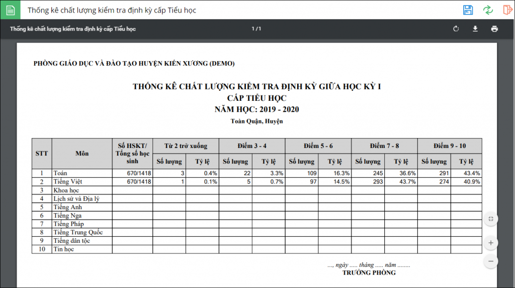 - Lựa chọn thống kê chất lượng kiểm tra định kỳ cấp tiểu học