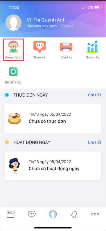 Giáo viên muốn thực hiện điểm danh cho học sinh vui lòng thực hiện như sau: